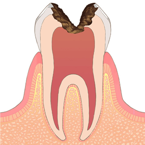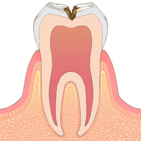 むし歯がエナメル質の内側にある象牙質まで到達した状態です。